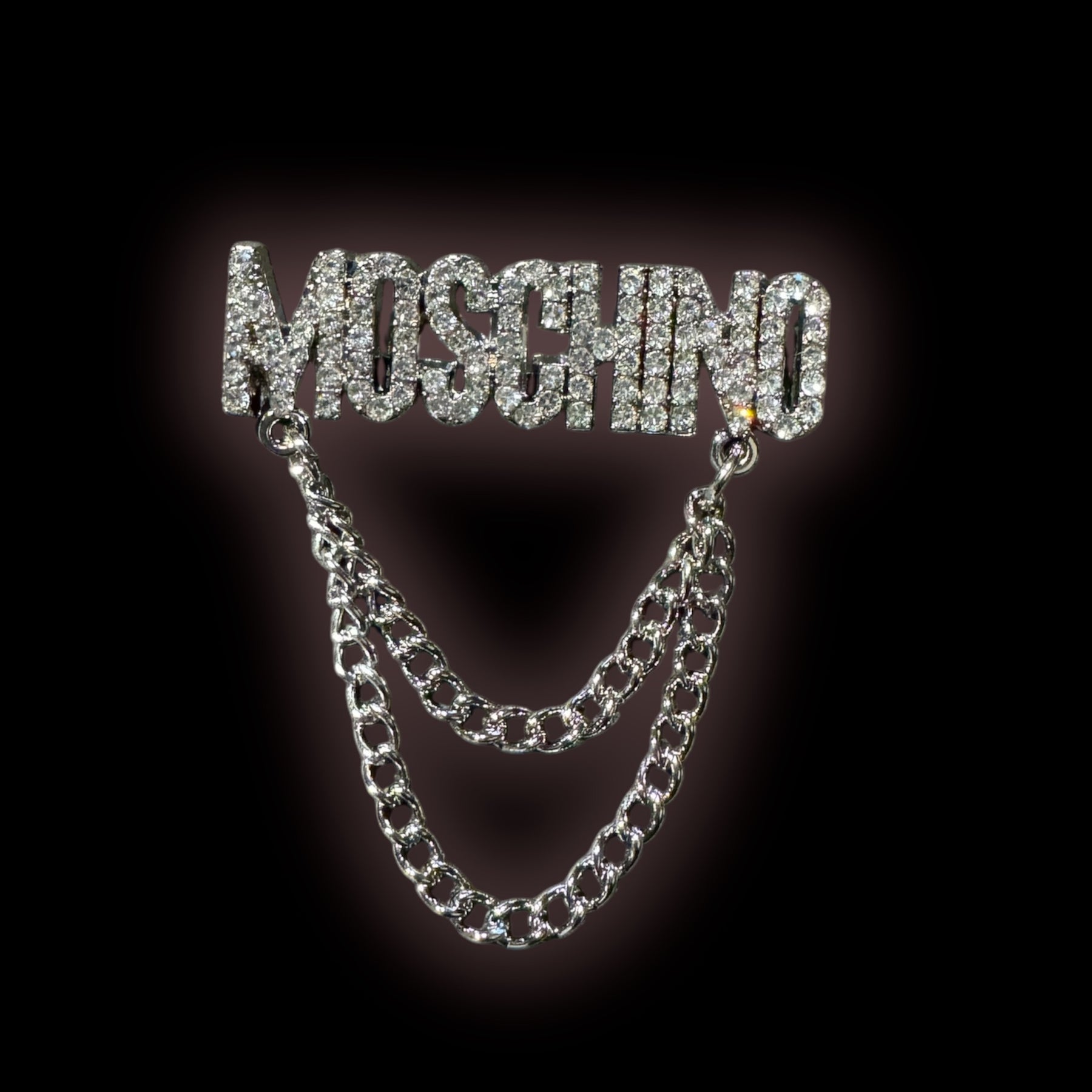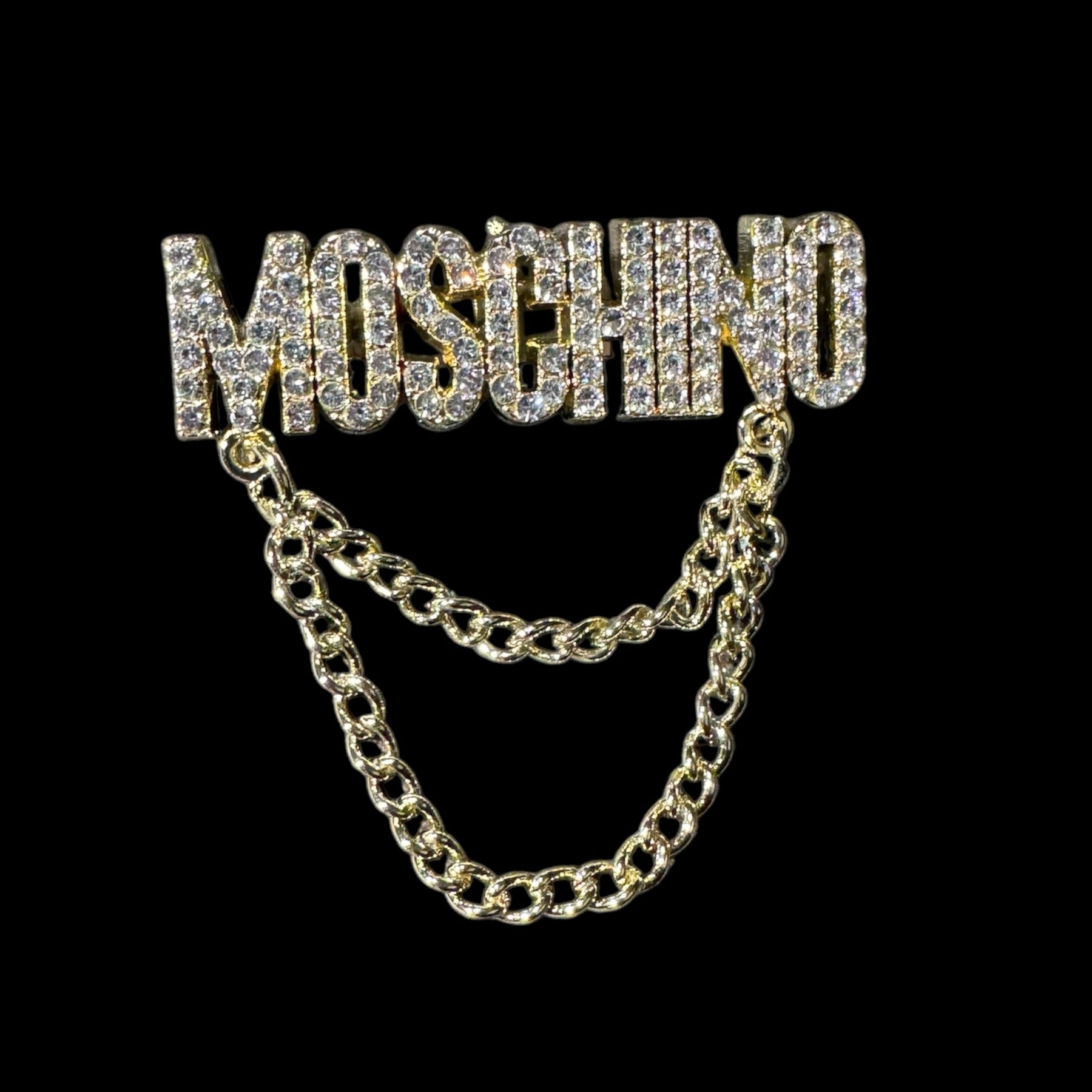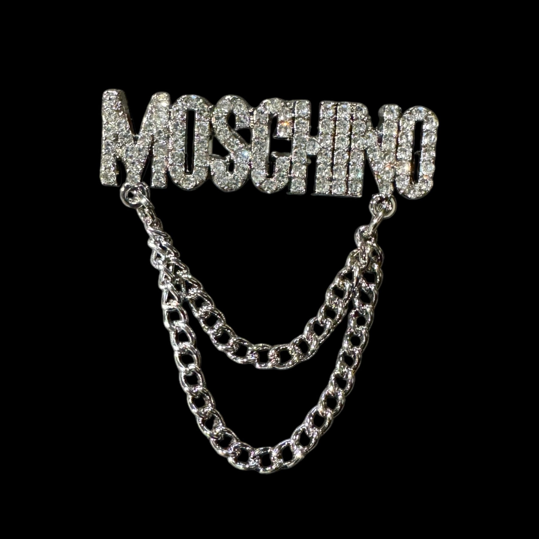 This Moschino inspired chain rhinestone brooch pin is beautiful and great quality.
