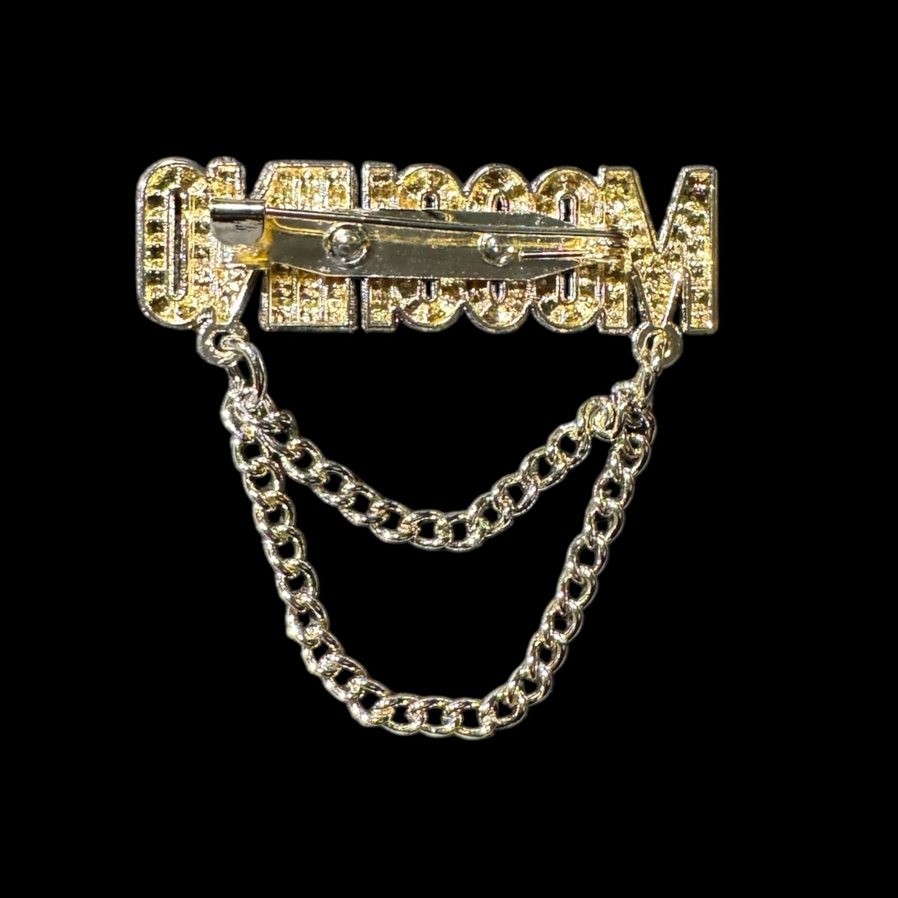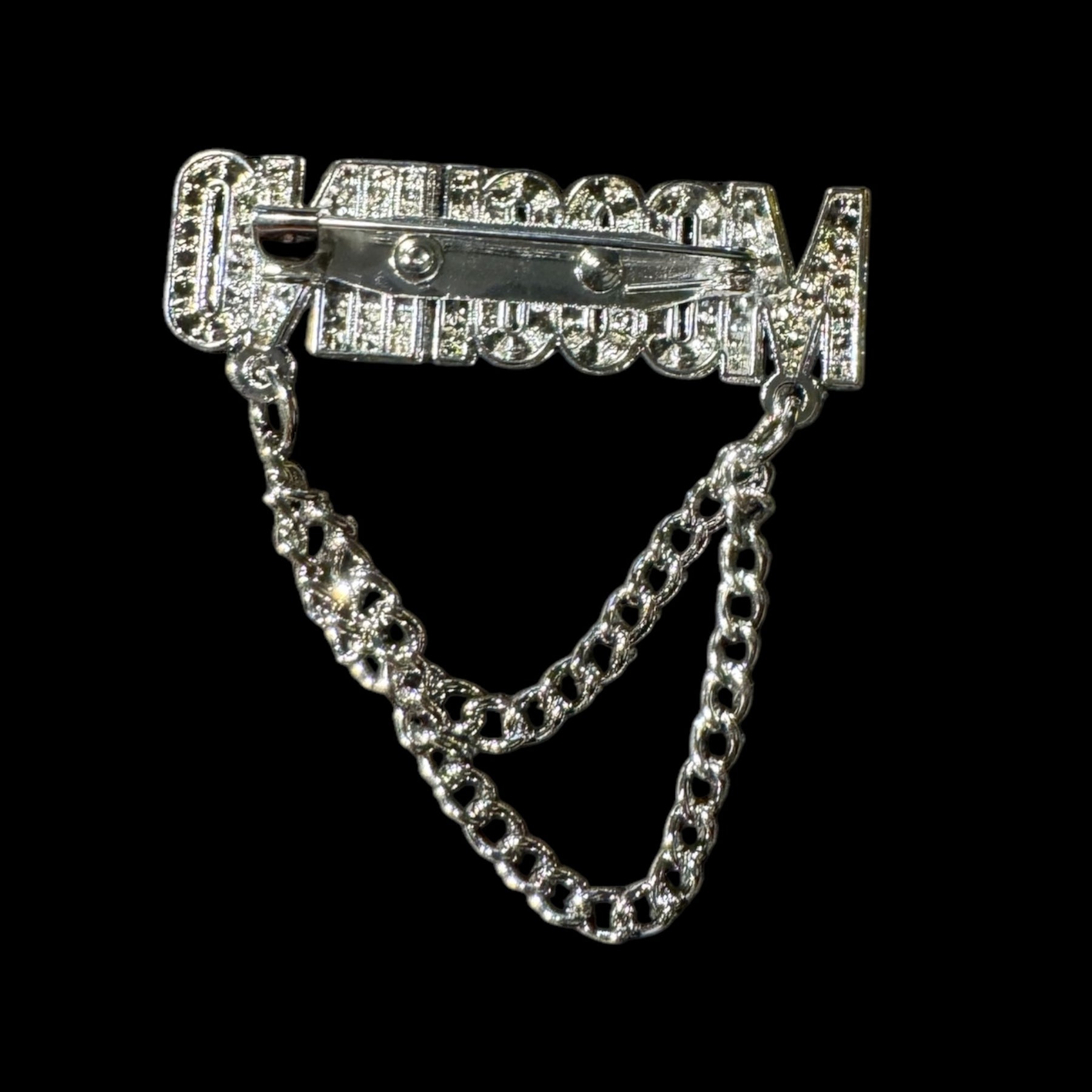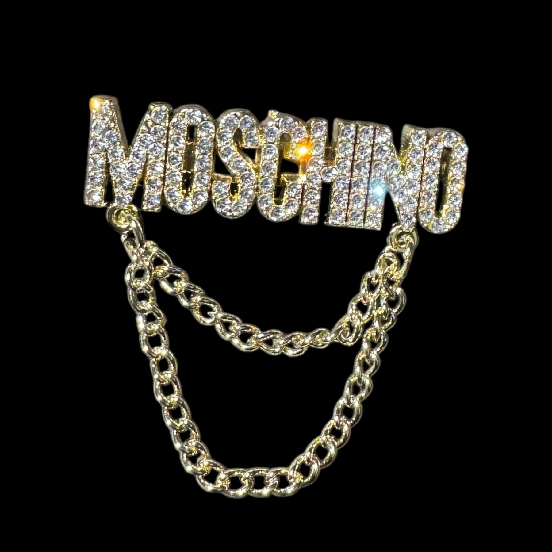 This Moschino inspired chain rhinestone brooch pin is beautiful and great quality.