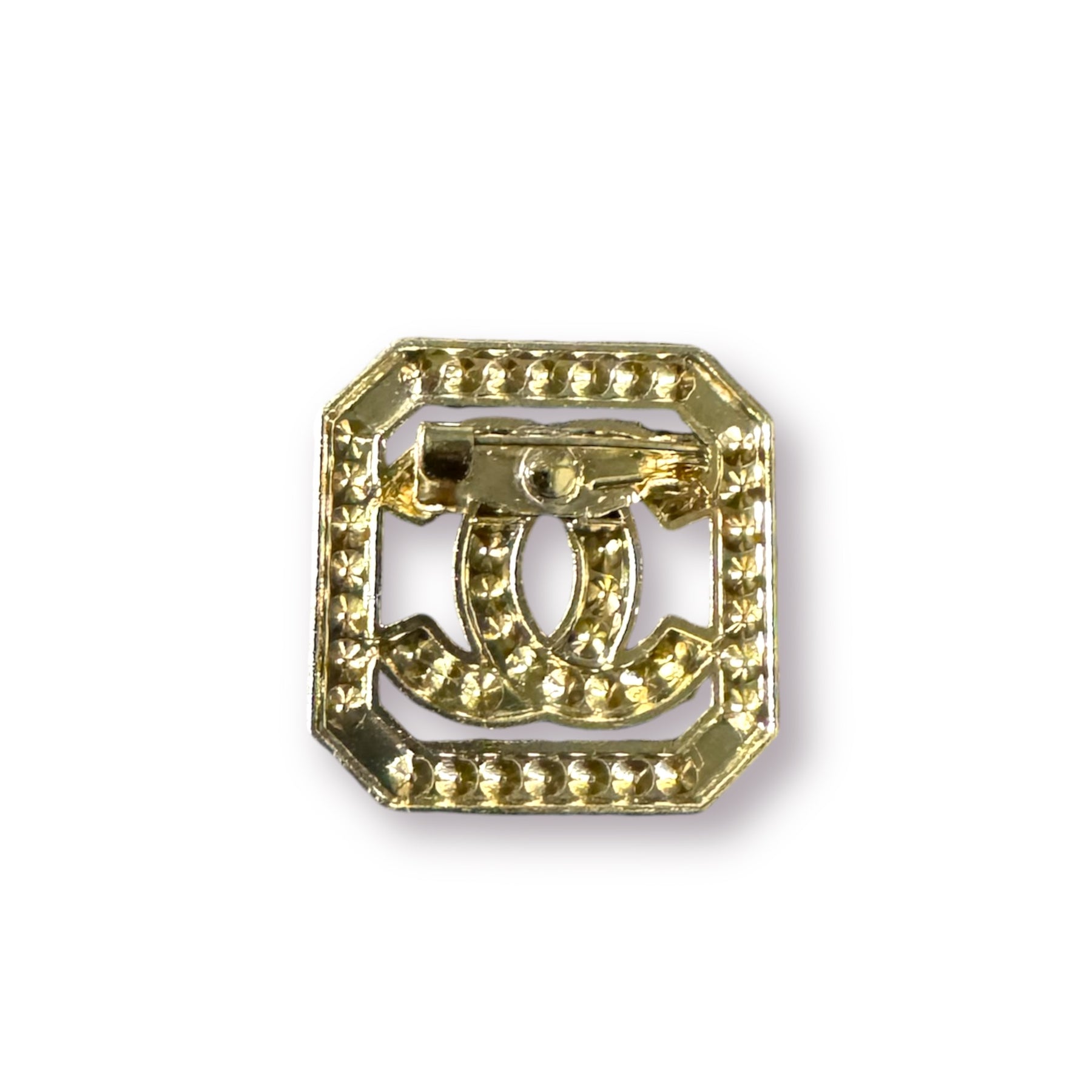 C Inspired Square Rhinestone Mini Brooch Pin- Gold
