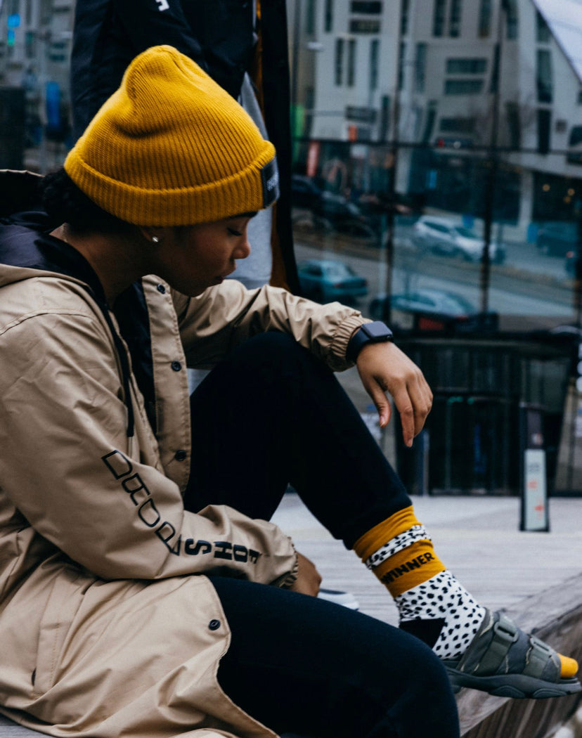 Keep your head warm and in style with the oversized beanie hat. Choose between two colors black or yellow wheat.