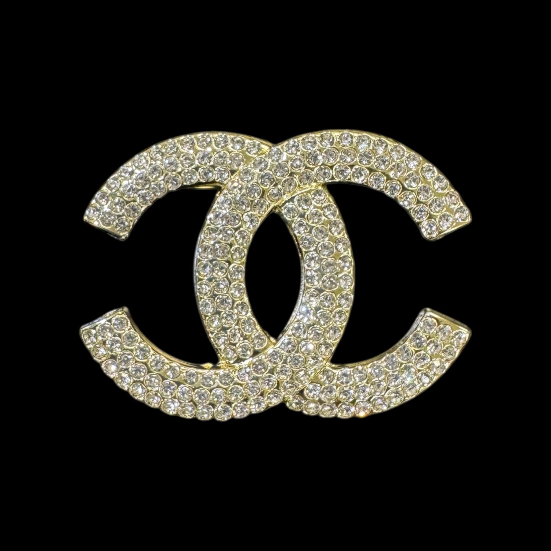 Bling bling CC Inspired gold and rhinestone brooch pin is beautiful and great quality.