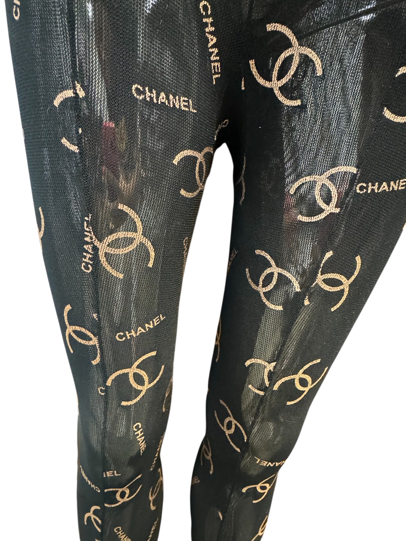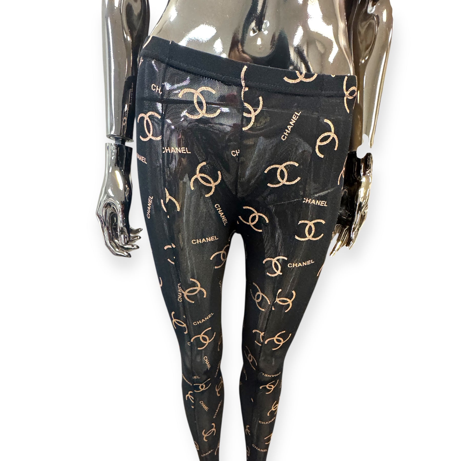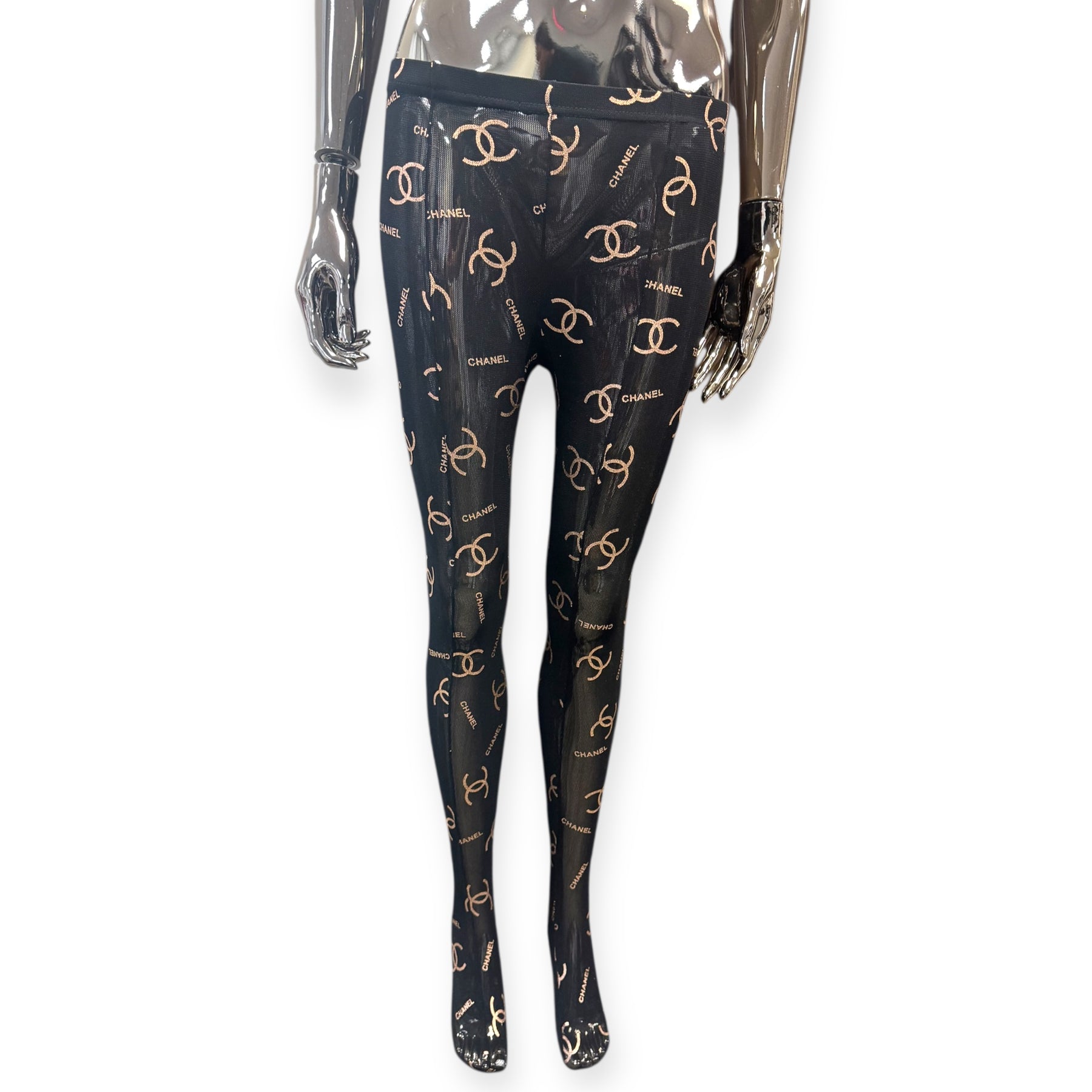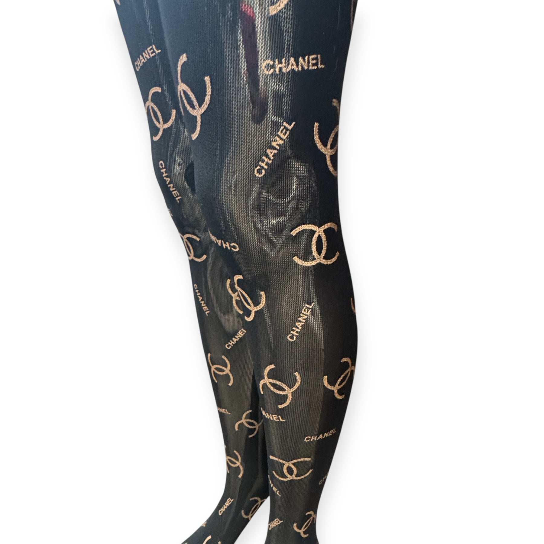 C Logo Inspired Thick Reusable Tights- Black & Champagne Gold