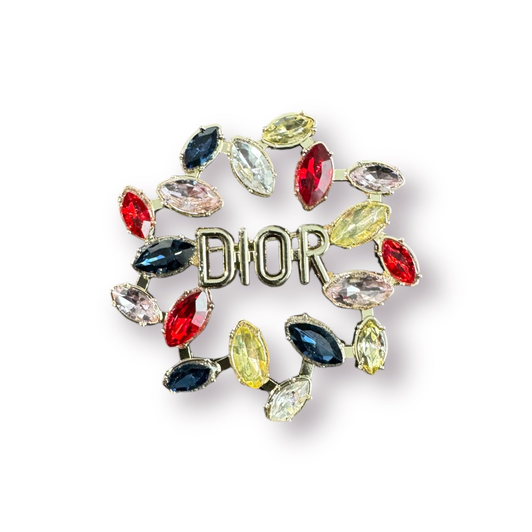 D OR Inspired Colorful  Rhinestone Brooch- Gold