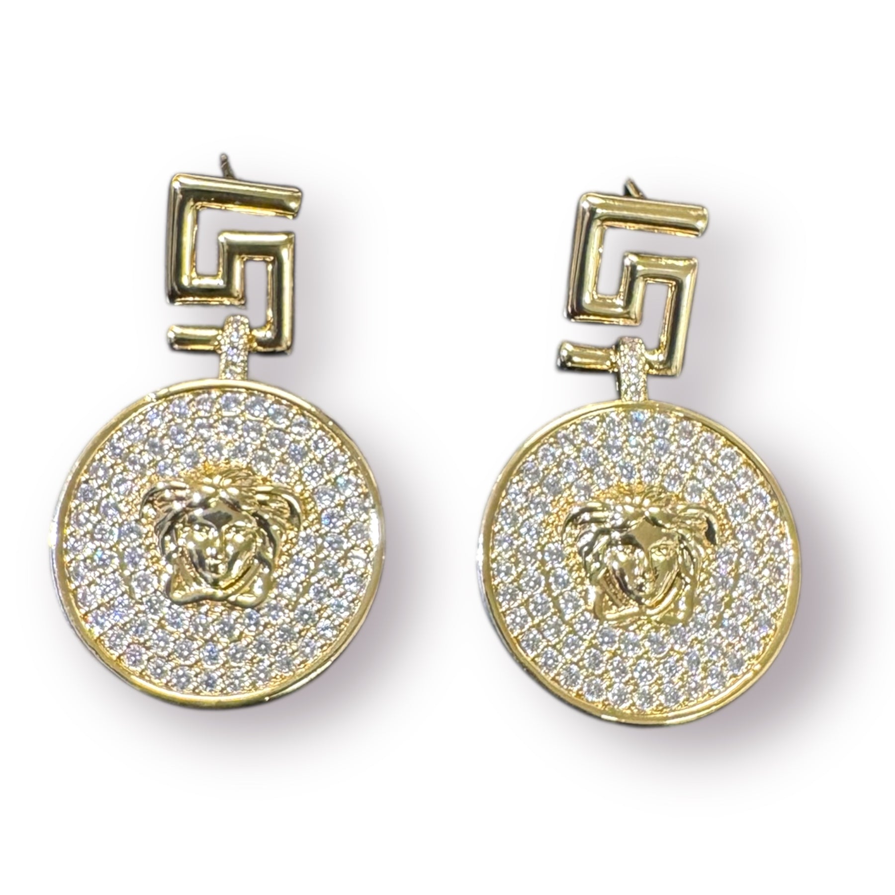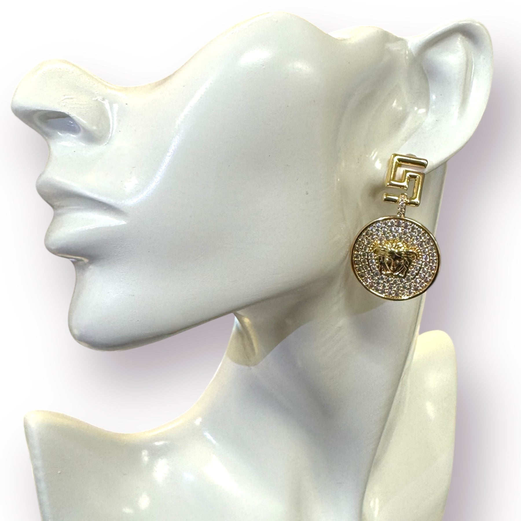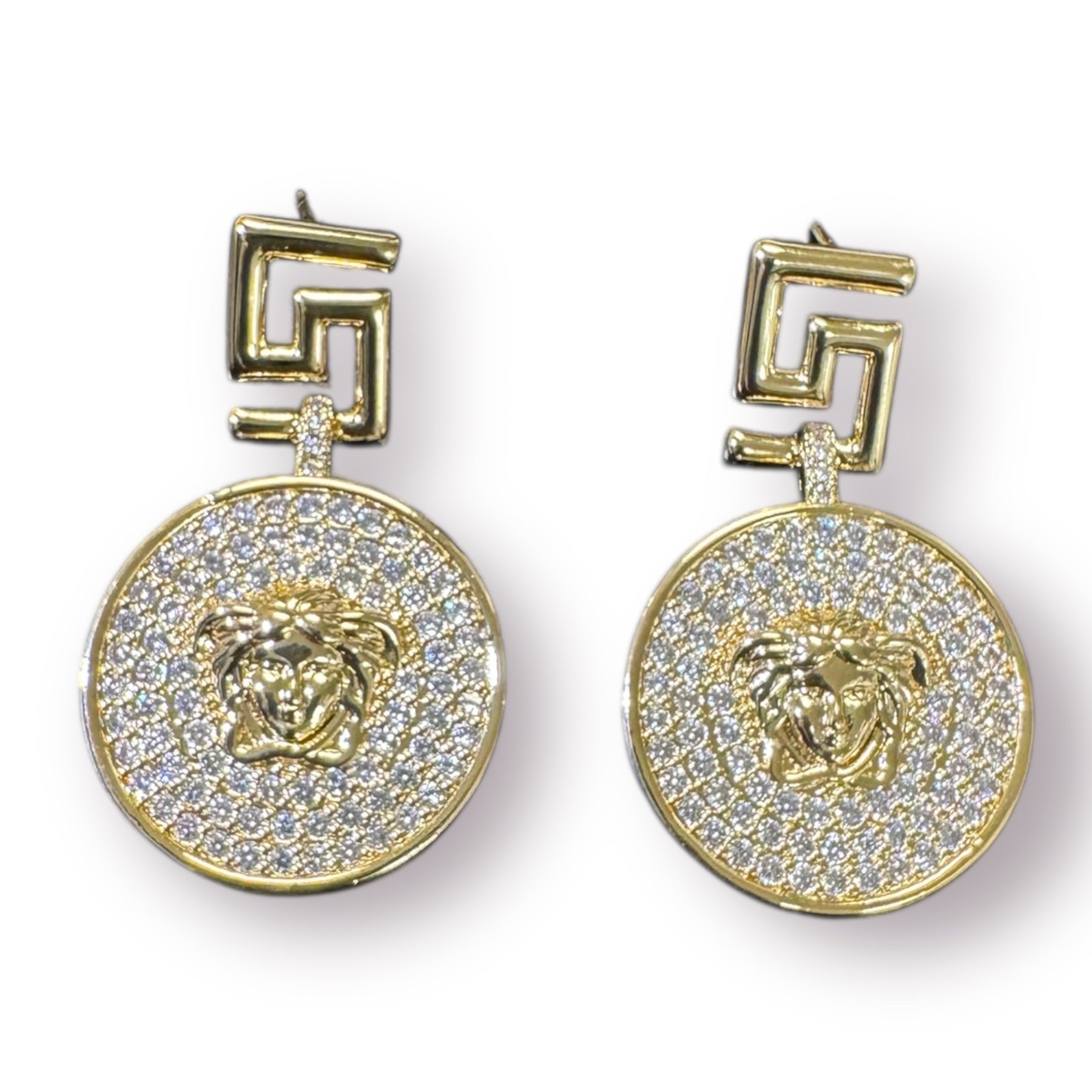 Versac Ispired High Quality Copper Rhinestone Earrings- Gold